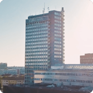 Den 84 meter höga DN-skrapan, med sin lägre byggnad Tidningshuset, är ett av Stockholms mest välkända landmärken. Idag rymmer fastigheten flexibla och moderna kontorsmiljöer där ikonisk arkitektur möter samtida arbetsliv.