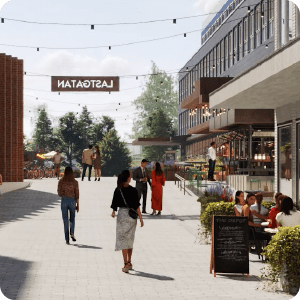 Lastgatan omvandlas till ett inbjudande och levande gångstråk, en sommargata och en härlig plats som kopplar samman husen i Tidningskvarteren. Under sommaren är det en plats där ni kan äta lunch, ha spontana möten och träffas över olika aktiviteter.